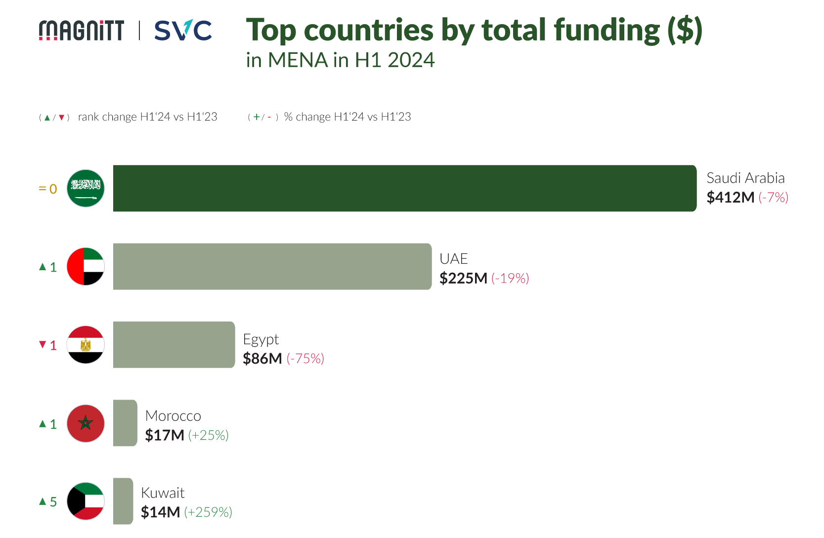 Saudi Arabia was ranked first, as the top venture capital funded country in MENA, according to the MAGNiTT report which is powered and sponsored by Saudi Venture Capital Company (SVC).